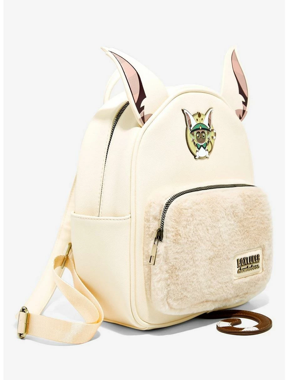 Take a piece of the Southern Air Temple with you wherever you go when you rock this adorable eared backpack inspired by the cutest winged-lemur, Momo! This mini backpack dons Fan Art Favorite Style winner from our Avatar: The Last Airbender fan contest. Featuring two open side pockets, faux fur zippered front pocket, interior zippered pocket, and enamel badge featuring the wide-eyed Momo, this mini backpack is perfect for showing your love of the loyal companion!Â