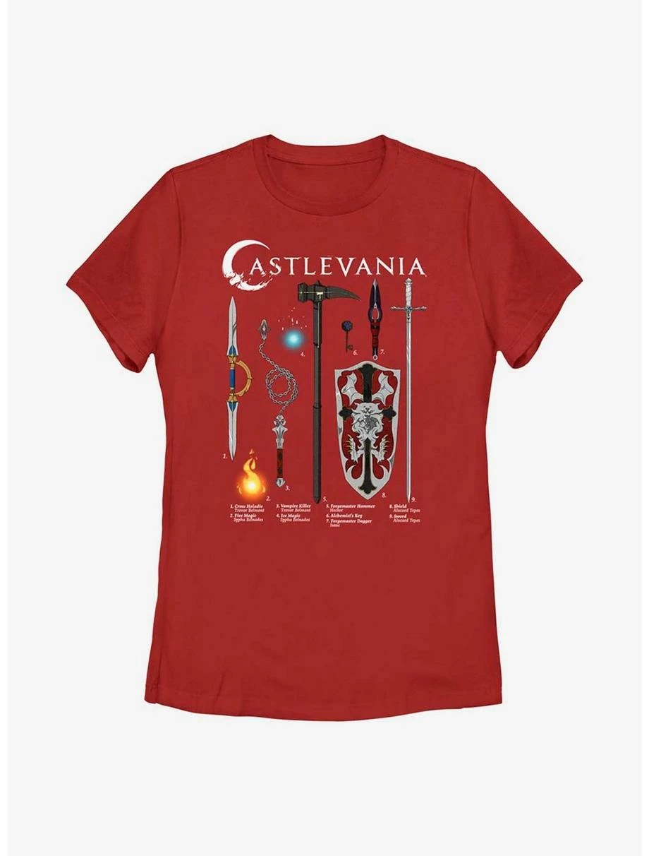 Gamer Castlevania Weapons Textbook Womens T-Shirt