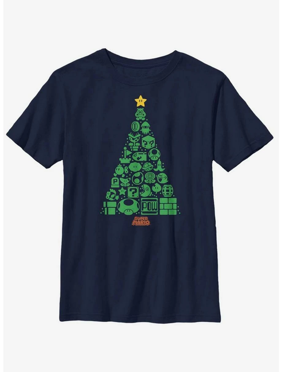 Nintendo Super Mario Christmas Tree Icons Youth T-Shirt