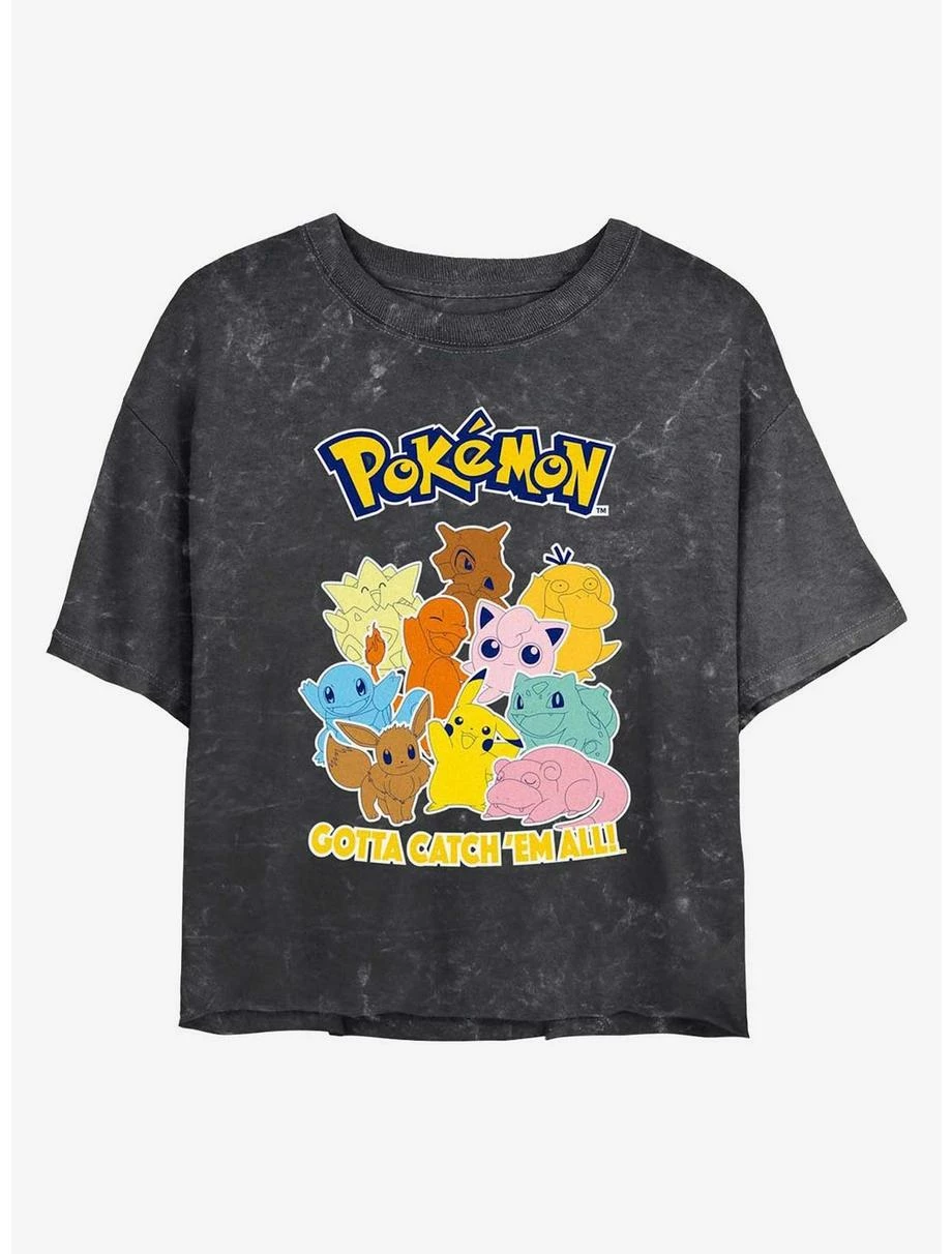 Pokemon Catch ‘Em All Mineral Wash Womens Crop T-Shirt