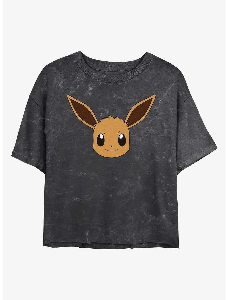 Pokemon Eevee Face Mineral Wash Womens Crop T-Shirt