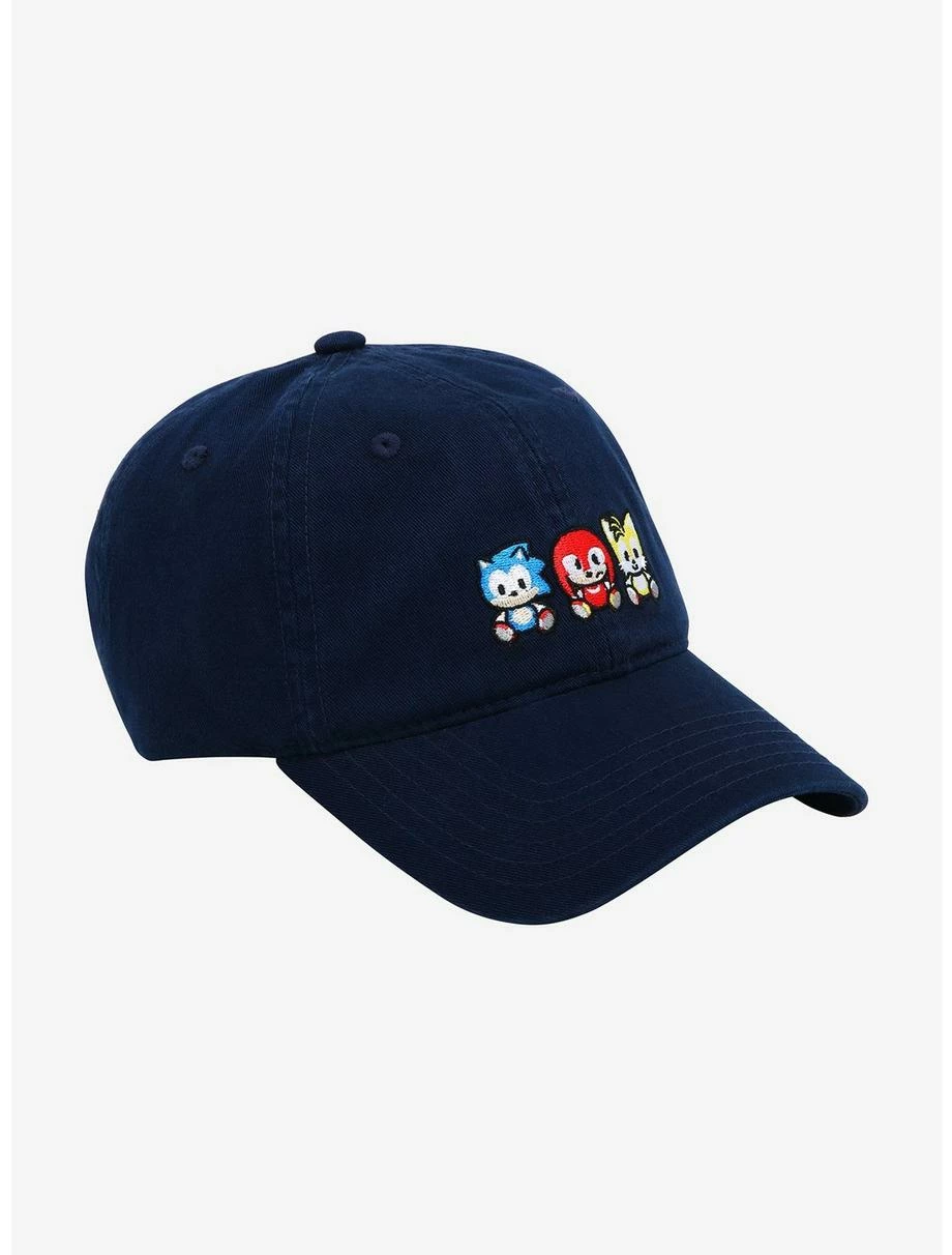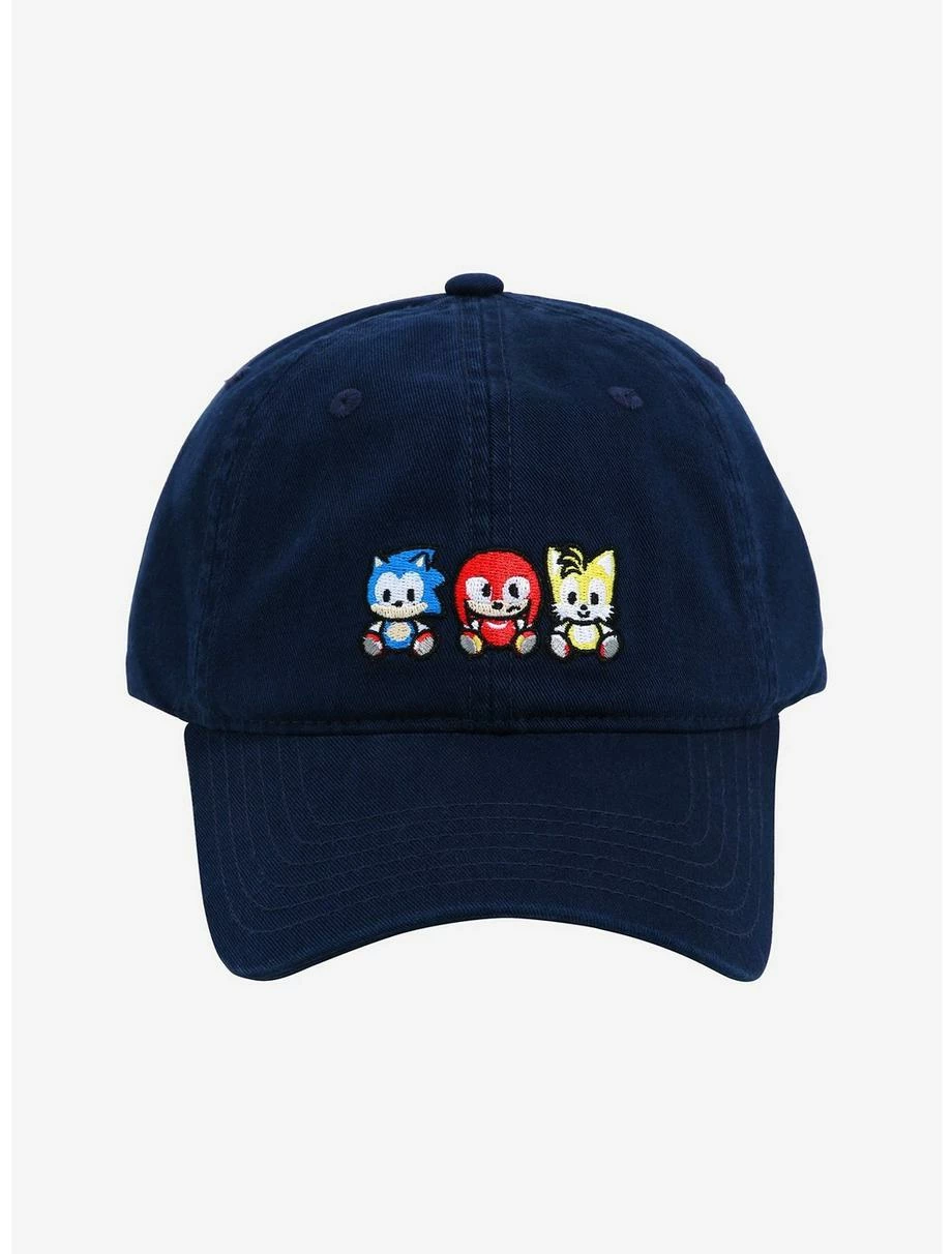 Sonic the Hedgehog and friends are ready to zoom into your wardrobe with this cap! The video game icons Sonic, Knuckles, and Tails appear on this hat’s embroidered front graphic with an adorable chibi makeover, ready to bring a dose of speed to any look. Also features a strapback closure for an adjustable fit.